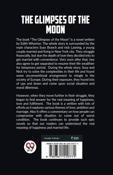 The book ¿The Glimpses of the Moon¿ is a novel written by Edith Wharton. The whole story is surrounded by the main characters Susy Branch and nick Lasning, a young couple married and living in New York city. They struggle financially, but due the depth of love they decided into to get married with convenience. Very soon after that, hey also agree to get separated to resume their life wealthier for temporary period. During the whole story, Susy and Nick try to solve the complexities in their life and found some unconventional arrangement to mingle in the society of Europe. During their exposure, they found lots of ups and down and come upon social situation and moral dilemmas. However, when they move further in their struggle, they began to find answer for the real meaning of happiness, love and fulfilment. The book is a written with lots of efforts as it explores various themes of love, ambition and marriage. Also It offers a commentary on how people can compromise with situation to come out of worst condition. The book continues to provide such epic novels so that our readers can understand the real meaning of happiness and married life.