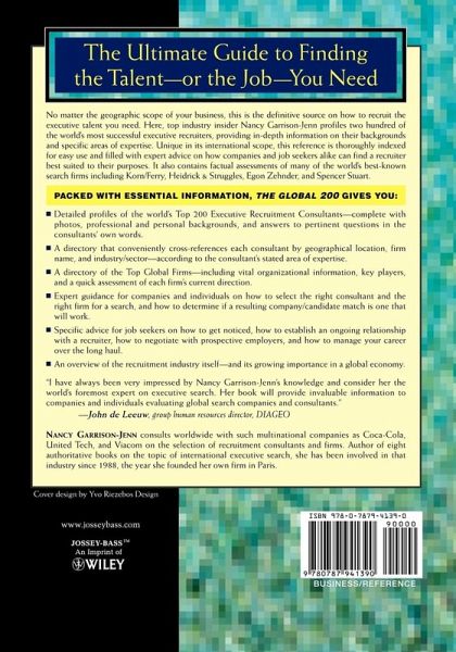The Ultimate Guide to Finding the Talent--or the Job--You Need"I have always been very impressed by Nancy Garrison-Jenn's knowledge and consider her the world's foremost expert on executive search. Her book will provide invaluable information to companies and individuals evaluating global search companies and consultants." (John de Leeuw, group human resources director, DIAGEO)