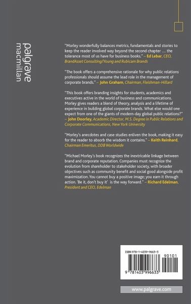 'This book offers branding insights for students, academics and executives active in the world of business and communications. Morley gives readers a blend of theory, analysis and a lifetime of experience in building global corporate brands. What else would one expect from one of the giants of modern-day global public relations?' John Doorley, Academic Director, M.S. Degree in Public Relations and Corporate Communications, New York University.
