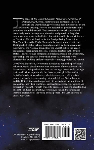 The pages of this book paint a portrait of thirteen scholars and their lifelong professional accomplishments in and contributions to teaching, service, and research in global international education around the world. Their extraordinary work contributed extensively to the development, direction and growth of the global education movement in the United States initiated by James M. Becker as Director of School Services for the Foreign Policy Association, New York City, in the 1960s. These scholars were honored with the Distinguished Global Scholar Award presented by the International Assembly of the National Council for the Social Studies, the largest professional organization for social studies educators in the United States. Their narratives comprise an intriguing mosaic of backgrounds, scholarship, and contexts from which their extraordinary work blossomed in building bridges-not walls-among peoples and nations. The publication is intended to honor the professional achievements in global international education of these scholars who have devoted their professional lives to creating a better world through their work. More importantly, this book exposes globally-minded individuals, educators, scholars, administrators, and policymakers around the world to empowering role models from Africa, Europe, and the United States and opportunity to learn about the multitude of professional activities, teachings, partnerships, exchange programs and research in which they might engage to promote a deeper understanding about the cultural, geographic, economic, social, and technological interconnectedness of the world and its people---the very purpose of global education.