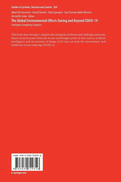 The Role of Internet of Medical c in Monitoring the Environmental Impact of COVID-19.- COVID-19 and water resources nexus: Potential routes for virus spread and management using artificial intelligence techniques.- Environment Challenges and the Impact of COVID-19 on Healthcare Sector: The Adoption of Intelligent Solutions.- COVID-19 Health Waste Management in Taiwan.- Artificial Intelligence for Sustainable Waste Management and Control during and post COVID-19 Crisis: Critical Challenges.- Carbon Monoxide Air Pollution Monitoring Approach in Africa during COVID-19 Pandemic.- Applications of Deep Learning in Predicting Natural Disasters Concurrent with the COVID-19 Pandemic: Short Review and Recommendations.- Sustainable Climate Change Policies Driven by Global CO2 Reduction During COVID-19.- The Correlation between Human lifestyle, Weather, Smart Technologies and Covid-19 Pandemic.- Exploring the Impacts of COVID-19 on Oil and Electricity Industry.- COVID-19 Outbreakand its Effect on Global Environment Sustainable System: Recommendation and Future Challenges.