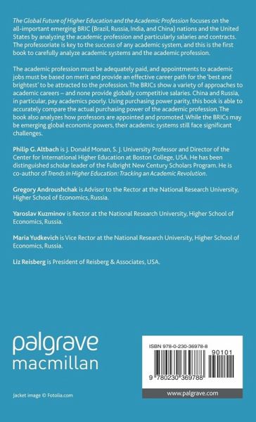 This is the first book to critically analyze the future of higher education systems in the four BRIC countries - Brazil, Russia, India and China - and the USA, analyzing academic salaries, contracts and working conditions and how national policy will affect the academic profession in each context.