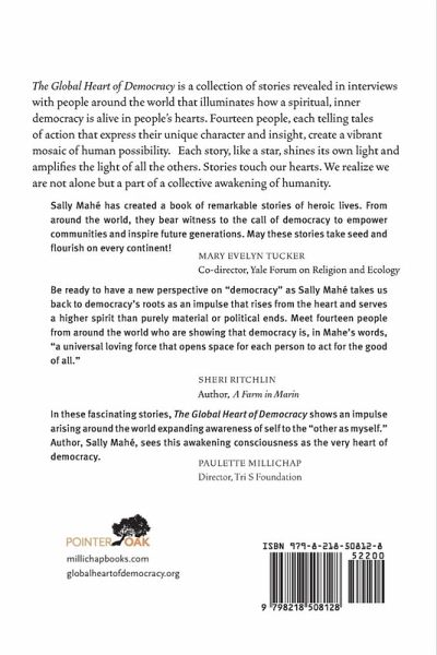 The Global Heart of Democracy presents interviews with "ordinary" people who are already practicing paths to a deeper democracy. These are people who bring together spiritual commitment with service as local and global citizens. While it is not new that ordinary people, citizens of every country see a need and selflessly step up to make positive change, it is newsworthy that they are acting with spiritual intent, finding one another, and gaining collective momentum. They are deepening their spiritual roots and bravely taking responsibility to create positive change. They are pilgrims finding their way and lighting a path for others. You are invited to discover 14 individuals whose stories are part of the rising of a counter revolution. Their stories are rich with examples of a heart-driven democracy and are evidence of the evolving human capacity to contribute to life on earth. These pilgrims come from many places: From Audri Scott Williams whose campaign for U.S. Congress in Alabama empowered her constituents; Ahmad Shah Karimi transforming his life's calling from Afghanistan to Berlin; Matt Regier, an artist and minister enlivening a small town in Kansas, to three members of the Ariyaratne family cultivating generations of peace and social justice in Sri Lanka. From James Offuh, a conflict mediator in Cote D-Ivoire; Jon Rasmussen, a trustworthy listener; Biswadeb Chakraborty, a musician peacemaker in West Bengal; Daisy, a thought leader in Vietnam; Audrey Lin, giving away smiles in a service economy; Elisabeth from Austria and Hasan from Syria, a match made in heaven; to Luz, a woman of light, obedient to her ancestors and spirit guides. Although a miniscule array, like sweet, smiling stars flickering in an immense cosmos of human endeavor, the selections in this book affirm the heroic journey of democracy that is growing in peoples' hearts. I hope these sparks of light and love inspire you to look around for others who live this way and to look inside and see what is lighting up your own heart.