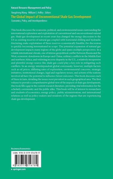 This book discusses the economic, political, and environmental issues surrounding the international exploration and exploitation of conventional and unconventional natural gas. Shale gas development in recent years has changed the energy discussion in the US as existing reserves of natural gas coupled with horizontal drilling and hydraulic fracturing make exploitation of these reserves economically feasible; the discussion is quickly becoming international in scope. The potential expansion of natural gas development impacts many regions of the globe and spans multiple perspectives. In a volatile international climate, one of intense geopolitical conflict between Russia and the West, economic slowdowns in Europe and China, military conflicts in the Middle East and northern Africa, and widening income disparity in the U.S., a relatively inexpensive and plentiful energy source like shale gas could play a key role in mitigating such conflicts. In an energy interdependent global community, however, multiple factors such as oil prices, differing rates of exploration, environmental concerns, strategic initiatives, institutional changes, legal and regulatory issues, and actions of the nations involved all have the potential to influence future outcomes. This book discusses each of these in turn, detailing the issues most prevalent in each geographical area. The first volume to provide a comprehensive global view of the impacts of shale gas development, this book fills a gap in the current research literature, providing vital information for the scholarly community and the public alike. This book will be of interest to researchers and students of economics, energy policy, public administration, and international relations as well as policy makers and residents of the regions that are experiencing shale gas development.