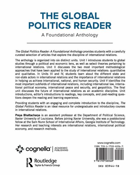 The Global Politics Reader: A Foundational Anthology provides students with a carefully curated selection of articles that explore the discipline of international relations. The anthology is organized into six distinct units. Unit I introduces students to global studies through a political and economic lens, as well as select theories pertaining to international relations. Unit II discusses the two most important methodological approaches that have been applied to the study of international relations: quantitative and qualitative. In Units III and IV, students learn about the different state and non-state actors in international relations and the importance of international relations in helping us achieve international, national, and human security. Unit V identifies the most important subfields of international relations, including international law, international political economy, international peace and security, and geopolitics. The final unit discusses the future of international relations as an academic discipline. Unit introductions, editor's introductions to readings, key concepts, and post-reading questions deepen the reading and learning experience. Providing students with an engaging and complete introduction to the discipline, The Global Politics Reader is an ideal resource for undergraduate and introductory courses in international relations.