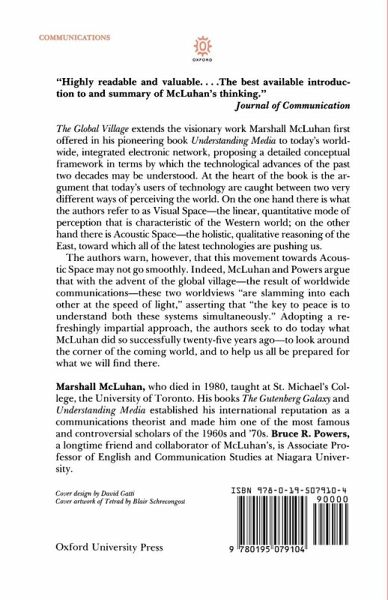 The Global Village extends the visionary work Marshall McLuhan first offered in his pioneering book Understanding Media to today's world-wide, integrated electronic network, proposing a detailed conceptual framework in terms by which the technological advances of the past decades may be understood.