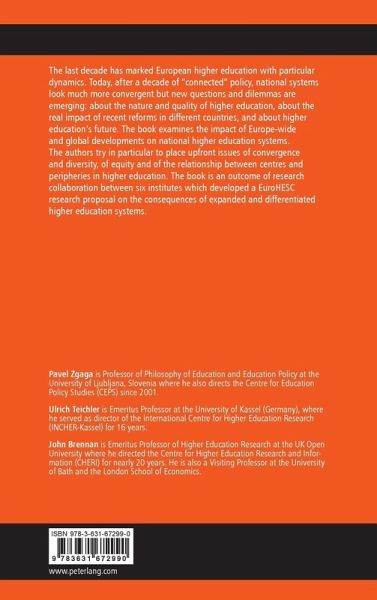 The last decade has marked European higher education with particular dynamics. Today, after a decade of "connected" policy, national systems look much more convergent but new questions and dilemmas are emerging: about the nature and quality of higher education, about the real impact of recent reforms in different countries, and about higher education's future. The book examines the impact of Europe-wide and global developments on national higher education systems. The authors try in particular to place upfront issues of convergence and diversity, of equity and of the relationship between centres and peripheries in higher education. The book is an outcome of research collaboration between six institutes which developed a EuroHESC research proposal on the consequences of expanded and differentiated higher education systems.