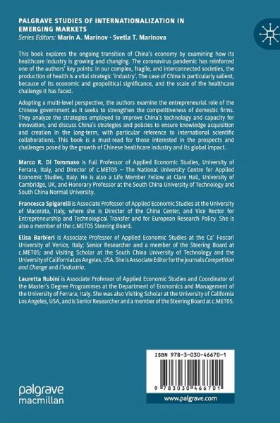 Adopting a multi-level perspective, the authors examine the entrepreneurial role of the Chinese government as it seeks to strengthen the competitiveness of domestic firms. They analyze the strategies employed to improve China's technology and capacity for innovation, and discuss China's strategies and policies to ensure knowledge acquisition and creation in the long-term, with particular reference to international scientific collaborations. This book is a must-read for students, researchers, andpolicymakers interested in the prospects and challenges posed by the growth of the Chinese healthcare industry and its global impact.