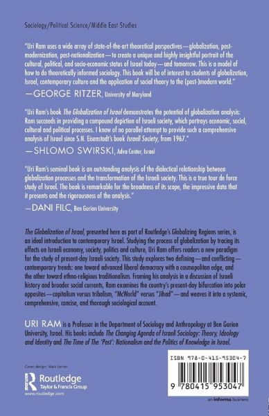 Uri Ram, a sociologist, is Senior Lecturer at the Department of Behavioral Sciences at Ben Gurion University, Israel. In the 1990s, Ram was the first scholar to employ a global perspective in analyzing Israeli society. He is the author, editor and co-editor of six books, as well as numerous articles about this and other related topics. His work has been published in English, Hebrew, German, French, and Arabic. He is a widely published scholar on Israel.