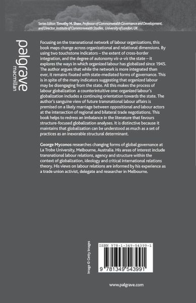 Myconos explores the ways in which organized labour has globalized since 1945. Using two 'touchstone' indicators - the extent of cross-border integration, and the autonomy vis-à-vis the state - the book reveals a counterintuitive process: network globalization involves a continuing orientation towards the state. The book not only seeks to identify organized labour's trajectory on the macro plane, but also to provide a more precise meaning of the term 'globalization' as it relates to agency.