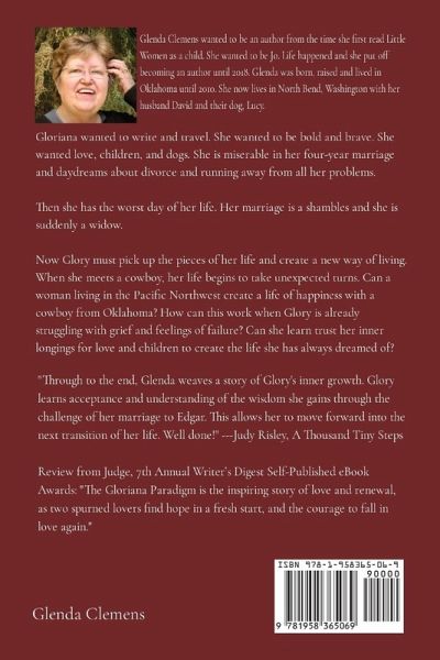 Gloriana wanted to write and travel. She wanted to be bold and brave. She wanted love, children, and dogs. She is miserable in her four-year marriage and daydreams about divorce and running away from all her problems. Then she has the worst day of her life. Her marriage is a shambles and she is suddenly a widow. Now Glory must pick up the pieces of her life and create a new way of living. When she meets a cowboy, her life begins to take unexpected turns. Can a woman living in the Pacific Northwest create a life of happiness with a cowboy from Oklahoma? How can this work when Glory is already struggling with grief and feelings of failure? Can she learn trust her inner longings for love and children to create the life she has always dreamed of?