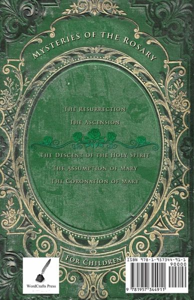The Mysteries of the Rosary center around the events of the life of Christ, and are divided into four sets of Mysteries: Joyful, Sorrowful, Glorious and most recently the Luminous, added by Saint John Paul II in 2002. The Scripture-based prayer begins with the Apostles' Creed which summarizes the great mysteries of the Catholic faith. The Our Father, which introduces each mystery, comes from the Gospels, as does the first part of the Hail Mary which includes the angel's words announcing Christ's birth and Elizabeth's greeting to Mary. The second part of the Hail Mary was added by St. Pius V. The gentle repetition of the words of the Rosary is meant to lead one into restful and contemplative prayer as we consider Mystery and enter into the secret place in our hearts where dwells the spirit of Christ. The four volumes of The Mysteries of the Rosary for Children are designed to help the younger ones to participate in worship and adoration of the Savior. Volume 3, The Glorious Mysteries include:¿¿¿¿¿¿The Resurrection The Ascension The Descent of the Holy Spirit The Assumption of Mary into Heaven The Coronation of Mary as The Queen of Heaven
