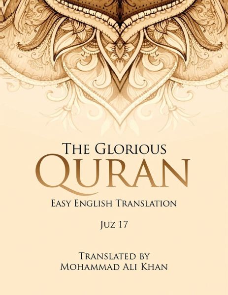 "The ultimate Charter of Humanity, the Glorious Quran, is presented with Easy English translation. The 17th section (Juzz) of Quran consists of Surah Al Anbiyaa (Glorious Quran 21), Surah Al Hajj (Glorious Quran 22). This translation is different in many ways. A. Meanings of words to correspond to the original text as much as possible. B. Translation of the Glorious Quran, to be made easy and understandable in as simple English as possible. C. If one English word cannot do justice to the meaning of the Arabic word, more English meanings given in parenthesis to make it clear. D. Sequence of words in the translation to correspond to the original text as close as possible. E. Pronunciations of names to correspond to the original Arabic word as close as possible. F. All pronouns in the original text explained clearly. G. Meanings of the Arabic words of Glorious Quran are based on the interpretation of the Last Prophet of Allah, Prophet Muhammad peace be upon." H. All unauthentic story telling from history and literature are excluded.
