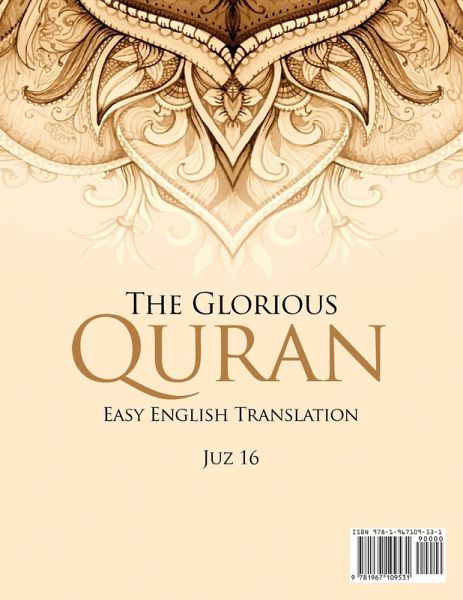 "The ultimate Charter of Humanity, the Glorious Quran, is presented with Easy English translation. The 16th section (Juzz) of Quran consists of Surah Al Kahf (Glorious Quran 18), Surah Maryam (Glorious Quran 19) and Surah Taahaa (Glorious Quran 20). This translation is different in many ways. A. Meanings of words to correspond to the original text as much as possible. B. Translation of the Glorious Quran, to be made easy and understandable in as simple English as possible. C. If one English word cannot do justice to the meaning of the Arabic word, more English meanings given in parenthesis to make it clear. D. Sequence of words in the translation to correspond to the original text as close as possible. E. Pronunciations of names to correspond to the original Arabic word as close as possible. F. All pronouns in the original text explained clearly. G. Meanings of the Arabic words of Glorious Quran are based on the interpretation of the Last Prophet of Allah, Prophet Muhammad peace be upon." H. All unauthentic story telling from history and literature are excluded.