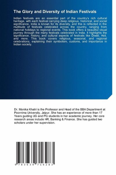 Indian festivals are an essential part of the country's rich cultural heritage, with each festival carrying deep religious, historical, and social significance. India is known for its diversity, and this is reflected in the multitude of festivals celebrated across the country, ranging from national holidays to regional events. This book offers a beautiful visual journey through the many festivals celebrated in India. It highlights the significance, history, and cultural aspects of festivals like Diwali, Holi, and more. This book covers religious, seasonal, and regional celebrations, explaining their symbolism, customs, and importance in Indian society.