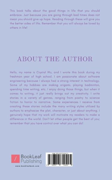 This book talks about the good things in life that you should embrace. Just because you are going through bad times does not mean you should give up hope. Reading through these will give you the better sides of life. Remember that you will always be loved by others in life!