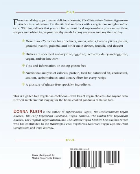 From tantalizing appetizers to delicious desserts, The Gluten-Free Italian Vegetarian Kitchen is a collection of authentic Italian dishes with a vegetarian and gluten-free twist. More than 225 recipes for appetizers, soups, salads, breads, pizzas, panini, gnocchi, risotto, polenta, and other main dishes, brunch, and dessert. Dishes are specified as dairy-free, egg-free, lacto-ovo, dairy-and-egg-free, vegan, and/or low-carb and the book gives tips and information on eating gluten-free, as well as a nutritional analysis of calories, protein, total fat, saturated fat, cholesterol, sodium, carbohydrates, and dietary fibre for every recipe. Also includes a glossary of gluten-free specialty ingredients