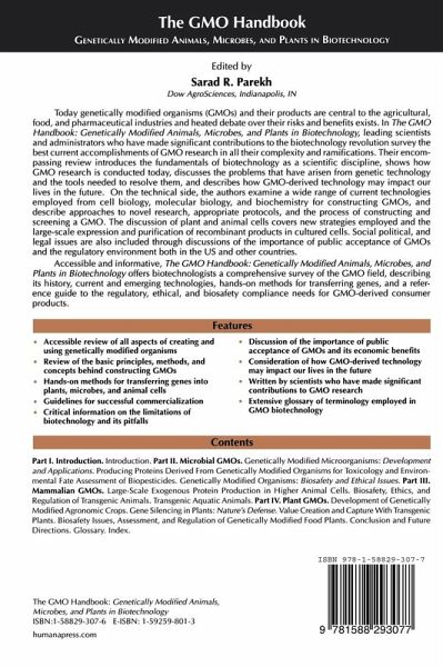 A comprehensive and accessible survey of the best current accomplishments of GMO research in all their complexity and ramifications. The authors introduce the fundamentals of biotechnology as a scientific discipline, show how GMO research is conducted today, discuss the problems that have arisen from genetic technology and the tools needed to resolve them, and describes how GMO-derived technology may impact our lives in the future. On the technical side, the authors examine a wide range of current technologies employed for constructing GMOs, and describe approaches to novel research, appropriate protocols, and the process of constructing and screening a GMO. The discussion of plant and animal cells covers new strategies employed and the large-scale expression and purification of recombinant products in cultured cells. Social political, and legal issues are also discussed.