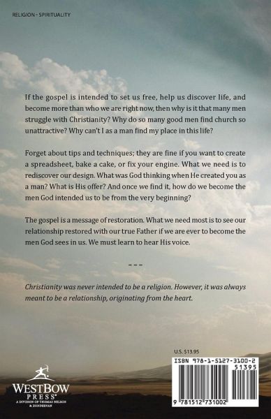If the gospel is intended to set us free, help us discover life, and become more than who we are right now, then why is it that many men struggle with Christianity? Why do so many good men find church so unattractive? Why can't I as a man find my place in this life? Forget about tips and techniques; they are fine if you want to create a spreadsheet, bake a cake, or fix your engine. What we need is to rediscover our design. What was God thinking when He created you as a man? What is His offer? And once we find it, how do we become the men God intended us to be from the very beginning? The gospel is a message of restoration. What we need most is to see our relationship restored with our true Father if we are ever to become the men God sees in us. We must learn to hear His voice. - - - Christianity was never intended to be a religion. However, it was always meant to be a relationship, originating from the heart.