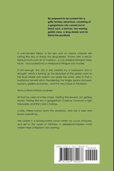 Khirza, a goblin drug-dealer, is recruited by the gangster Ozher to find a key to a mysterious bag. Apparently, one of Ozher's personal enemies is also after that bag. Meanwhile, the entire city of Culerica is hit by a heatwave, and violence amongst the goblin clans threatens the precarious balance between humans, goblins and elves, risking to turn the entire city into a battlefield. A shadowy terrorist is threatening to unleash chaos during the celebration of an ancient human victory over the goblins. The ruthless and cultivated colonel Goadbeiles is tasked to unravel the web of lies and deception and is drawn into the war between two goblin clans. Khirza, fighting a losing war against time, is employing the help of his lover and friend Ulumi, a prostitute with a deep knowledge of secrets and intrigue.