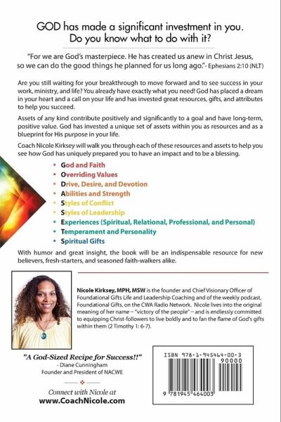 Are you still waiting for your breakthrough to move forward and to see success in your work, ministry, and life? You already have exactly what you need! God has placed a dream in your heart and a call on your life and has invested great resources, gifts, and attributes to help you succeed. Assets of any kind contribute positively and significantly to a goal and have long-term, positive value. God has invested a unique set of assets within you as resources and as a blueprint for His purpose in your life. Coach Nicole Kirksey will walk you through each of these resources and assets to help you see how God has uniquely prepared you to have an impact and to be a blessing. God and Faith Overriding Values Drive, Desire, and Devotion Abilities and Strength Styles of Conflict Styles of Leadership Experiences (Spiritual, Relational, Professional, and Personal) Temperament and Personality Spiritual Gifts With humor and great insight, the book will be an indispensable resource for new believers, fresh-starters, and seasoned faith-walkers alike.