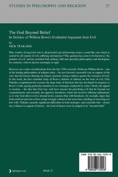 For quite some time I have corresponded with Nick Trakakis, a very t- ented young philosopher at Monash University in Australia. He was c- pleting a manuscript on the problem of evil. Although we've never met, I've come to greatly admire his philosophical ability, even, or I hope particularly, when he notes weaknesses, if not outright mistakes, in my own writings on this topic. His knowledge of the relevant literature is nothing short of extraordinary. I am deeply impressed by the clarity and quality of his wr- ing, his measured judgments, as well as his philosophical ability. In this volume Trakakis begins with my 1979 paper, "The Problem of Evil and Some Varieties of Atheism," sets forth the evidential argument from evil, and considers the large body of literature developed in response to that argument. He examines and evaluates with great care the objections raised by Wykstra, Howard-Snyder, Durston,Alston, and others, along with my responses to those forceful objections. Noting the importance of the assumption that if there are God-justifying goods for horrendous human and animal suffering then it is likely that humans would have some awareness of what those justifying goods might be, Trakakis carefully evaluates the lit- ature bearing on this crucial issue, including, of course, the significance of what is commonly known as the problem of divine hiddenness, and the line of response proposed by the sceptical theists - philosophers who are theists but sceptical of arguments against theism.