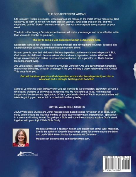 Life is messy. People are messy. Circumstances are messy. In the midst of your messy life, God wants you to learn to rely on Him more than on yourself. What does this look like, and why should you do this? The truth is that being a God-dependent woman will make you stronger and more effective in life than you could ever be on your own. The key to being a God-dependent woman is dependent living. Dependent living is not weakness. It is being stronger and having more influence, success, and satisfaction than you could ever have through our own efforts. The God-Dependent Woman Bible Study will show you from 2 Corinthians how to depend on Christ with your strengths, in your weaknesses, and everywhere in between. Whatever God brings into your life that makes you more dependent upon Him is good for you and for those around you. Being a God-dependent woman will truly make you stronger and more effective in life than you could ever be on your own! Try this 11-lesson study with associated podcasts and see for yourself.