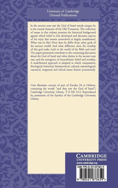 In the ancient Near East the God of Israel stands unique; he is the central character of the Old Testament. The collection of essays in this volume presents the historical background against which belief in him developed and discusses aspects of the topic that remain unresolved or largely unaddressed. What was he like? How does he differ from other gods of the ancient world? And what difference does the worship of this god make, both in the world of the Bible and now? The papers presented contribute to the continuing discussion about the God of Israel and other deities in the ancient Near East, and the emergence of monotheistic belief and worship. A multifaceted approach is adopted in which comparative, theological, historical, literary-critical, cultural, narratological, canonical, exegetical and ethical issues feature prominently.