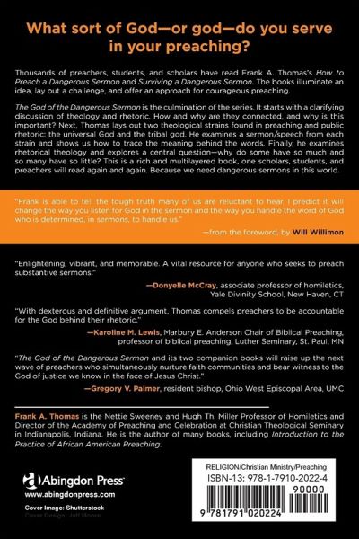 Every sermon has a theology, and a god of that theology behind it. Preaching is more effective, and has more integrity when preachers understand the god behind their theology. Specifically, whether the god is a universal God, like the one expressed by Christ and the Christian faith, or a tribal god, which is sometimes dressed up to resemble Christianity but is something else entirely. Frank A. Thomas culminates his exploration of the Dangerous Sermon with this book, which leads readers through the process of identifying and understanding the gods behind theology, and their connection to preaching. The reader is equipped to discern the metaphors, symbols, and rhetorical indicators which point to the god a preacher is serving and calling others to serve.
