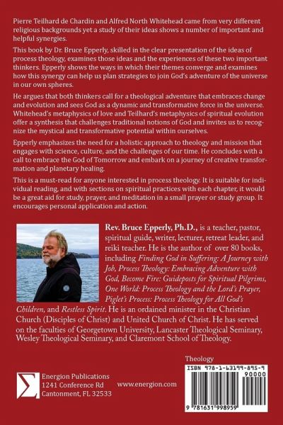 Pierre Teilhard de Chardin and Alfred North Whitehead came from very different religious backgrounds yet a study of their ideas shows a number of important and helpful synergies. This book by Dr. Bruce Epperly, skilled in the clear presentation of the ideas of process theology, examines those ideas and the experiences of these two important thinkers. Epperly shows the ways in which their themes converge and examines how this synergy can help us plan strategies to join God's adventure of the universe in our own spheres. He argues that both thinkers call for a theological adventure that embraces change and evolution and sees God as a dynamic and transformative force in the universe. Whitehead's metaphysics of love and Teilhard's metaphysics of spiritual evolution offer a synthesis that challenges traditional notions of God and invites us to recognize the mystical and transformative potential within ourselves. Epperly emphasizes the need for a holistic approach to theology and mission that engages with science, culture, and the challenges of our time. He concludes with a call to embrace the God of Tomorrow and embark on a journey of creative transformation and planetary healing. This is a must-read for anyone interested in process theology. It is suitable for individual reading, and with sections on spiritual practices with each chapter, it would be a great aid for study, prayer, and meditation in a small prayer or study group. It encourages personal application and action.
