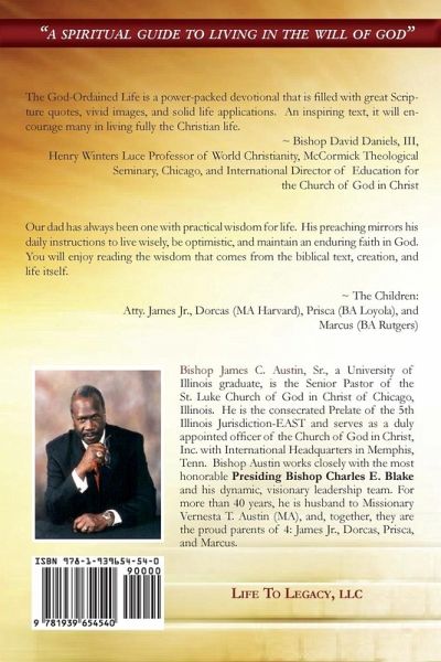 The God-Ordained Life is a God-sent manual for succeeding in the Christian life. It is a guideline of how to live a Christ-centered life. It offers encouragement, hope and promise for all seeking to live lives pleasing to God. It is a book for those who are lost, confused, indecisive, and un-churched, and for those who are pondering their purpose in life. For all of us, it serves as a turning point toward the right direction to obtain a fulfilled life and to love and serve the Lord Jesus Christ. This book will help you to live your life effectively, develop a prayerful life, and develop a lifestyle that will not define you based on who you once were. It will help you to help others that you meet along life's journey and to do it to the glory of God. ~Dr. Barbara I. Jackson-Hicks, Retired Principal/Administrator, Chicago Public Schools The God-Ordained Life truly offers the reader an understanding of the power of God if only they believe. It is a spiritual guide to living in the will of God. It contains biblical stories that tell and characters that show how to go through difficult times in committing to the command of God. It also gives advice for keeping your body (the temple of God) healthy and strong. Anyone who desires a better understanding of what the Lord desires for His people will enjoy the contents of this book. This book will help you to grow and develop in your awareness of who God is, and will assist you in having a real purpose in your faith walk through life. ~Dr. Rosemarie Nicholes, Retired School Administrator/Adjunct Professor