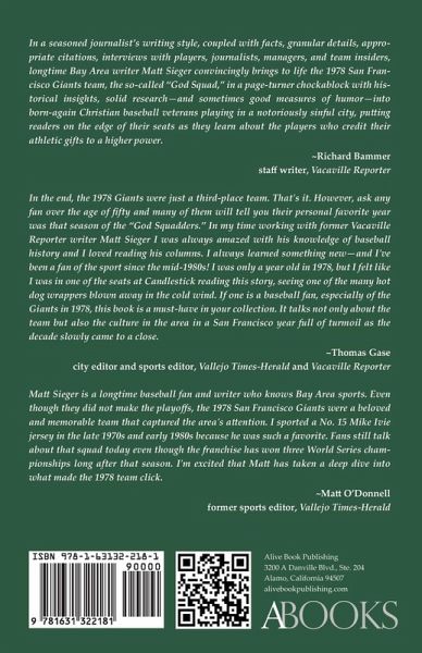 In the late 1970s, the San Francisco Bay Area sportswriters labeled the growing group of born-again Christians on the San Francisco Giants the "God Squad." When the God Squadders helped propel the team to a strong 1978 season, challenging the Dodgers and Reds, they often gave God the credit in post-game interviews. The press raised no objection. But in 1979, when the Giants' fortunes faded on the field, local sportswriters were quick to blame the born-again players, claiming their newfound faith had made them passive. The God Squad features present-day interviews with two of the born-again Giants of that era as well as with two of the sportswriters who covered them. You will also re-live the exciting 1978 pennant push and get inside the motives and beliefs of the six most vocal God Squadders. The book includes 14 pages of photos and a chapter on "God Squad II," the second wave of born-again Giants in the late 1980s and early 1990s, including Dave Dravecky and Hall of Famer Gary Carter.