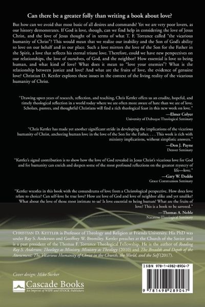 Can there be a greater folly than writing a book about love? But how can we avoid that most basic of all desires and commands? Yet we are very poor lovers, as our history demonstrates. If God is love, though, can we find help in considering the love of Jesus Christ, and the love of Jesus thought of in terms of what T. F. Torrance called ""the vicarious humanity of Christ""? This would mean that we realize our inability and the Son of God's ability to love on our behalf and in our place. Such a love mirrors the love of the Son for the Father in the Spirit, a love that reflects his eternal triune love. Therefore, could we have new perspectives on our relationships, the love of ourselves, of God, and the neighbor? How essential is love to being human, and what kind of love? What does it mean to ""love your enemies""? What is the relationship between justice and love? And what are the fruits of love, the evidence of genuine love? Christian D. Kettler explores these issues in the context of the living reality of the vicarious humanity of Christ.