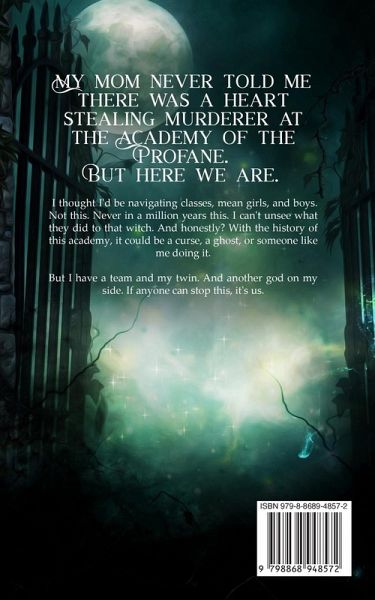 My mom never told me there was a heart stealing murderer at the Academy of the Profane. But here we are. I thought I'd be navigating classes, mean girls, and boys. Not this. Never in a million years this. I can't unsee what they did to that witch. And honestly? With the history of this academy, it could be a curse, a ghost, or someone like me doing it. But I have a team and my twin. And another god on my side. If anyone can stop this, it's us.
