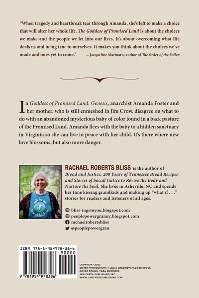 In Goddess of Promised Land: Genesis, anarchist Amanda Foster and her mother, who is still enmeshed in Jim Crow, disagree on what to do with an abandoned mysterious baby of color found in a back pasture of the Promised Land. Amanda flees with the baby to a hidden sanctuary in Virginia so she can live in peace with her child. It's there where new love blossoms, but also more danger.