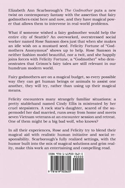 Elizabeth Ann Scarborough’s The Godmother puts a new twist on contemporary fantasy with the assertion that fairy godmothers exist here and now, and they have magical power that allows them to intervene in real-world problems. What if someone wished a fairy godmother would help the entire city of Seattle? An overworked, overstressed social worker named Rose Samson does just that when she makes an idle wish on a mustard seed. Felicity Fortune of "Godmothers Anonymous" shows up to help. Rose Samson is neither fashion model beautiful, nor a twit, and she happily joins forces with Felicity Fortune, a "Godmother" who demonstrates that Grimm’s fairy tales are still relevant in our humdrum modern world. Fairy godmothers are on a magical budget, so every possible way they can get human beings or animals to assist one another, they will try, rather than using up their magical means. Felicity encounters many strangely familiar situations: a pretty stablehand named Cindy Ellis is mistreated by her cruel stepsisters. A rock star’s daughter, scared of the supermodel her dad married, runs away from home and meets seven Vietnam veterans at an encounter session and retreat. One of them might be a big bad wolf, who knows? In all their experiences, Rose and Felicity try to blend their magical aid with realistic human initiative and social responsibility. Scarborough’s fully realized settings, with the humor built into the mix of magical solutions and grim reality, make this work an entertaining and compelling read.