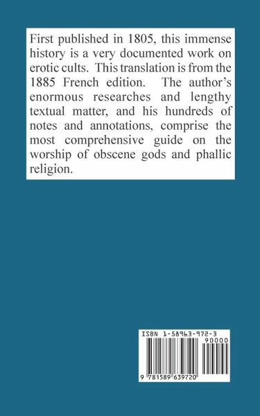 First published in 1805, this immense history is a very documented work on erotic cults. This translation is from the 1885 French edition. The author's enormous researches and lengthy textual matter, and his hundreds of notes and annotations, comprise the most comprehensive guide on the worship of obscene gods and phallic religion.