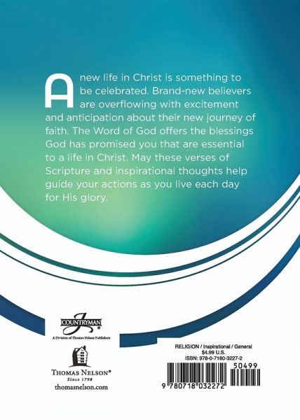 A new book for new believers! A new life in Christ is something to be celebrated. Brand-new believers are overflowing with excitement and anticipation about their new journey of faith. They deserve a meaningful guidebook that will help them know where to turn for the wonderful things God has promised for them throughout scripture. Divided topically and filled with Scripture promises and teachings for new Christians, this book is a wonderful gift for anyone who has recently become a new believer. For more than thirty years, the God's Promises(R) series--which has sold more than 15 million copies--has been guiding and comforting people through topically arranged scriptures addressing many facets of life. This promise book features short, topically based chapters teaching readers about the basics of their newfound faith. Interwoven within each chapter are scripture verses that address questions and topics that specifically answer the needs of new believers. This book will bring biblical answers to many questions new believers face, offering encouragement, hope, and a taste of the abundant promises of God for those who believe in Him. Sample topics include: New believers in the faith What is salvation? What to do when you need wisdom How to overcome temptation