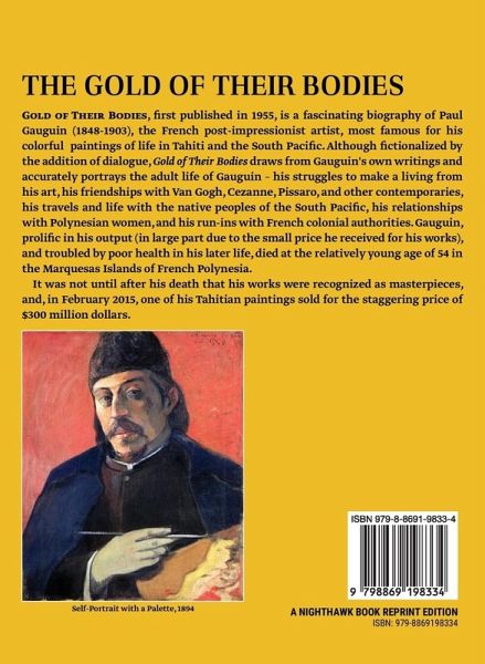 Gold of Their Bodies, first published in 1955, is a fascinating biography of Paul Gauguin (1848-1903), the French post-impressionist artist, most famous for his colorful paintings of life in Tahiti and the South Pacific. Although fictionalized by the addition of dialogue, Gold of Their Bodies draws from Gauguin's own writings and accurately portrays the adult life of Gauguin - his struggles to make a living from his art, his friendships with Van Gogh, Cezanne, Pissaro, and other contemporaries, his travels and life with the native peoples of the South Pacific, his relationships with Polynesian women, and his run-ins with French colonial authorities. Gauguin, prolific in his output (in large part due to the small price he received for his works), and troubled by poor health in his later life, died at the relatively young age of 54 in the Marquesas Islands of French Polynesia. It was not until after his death that his works were recognized as masterpieces, and, in February 2015, one of his Tahitian paintings sold for the staggering price of $300 million dollars.