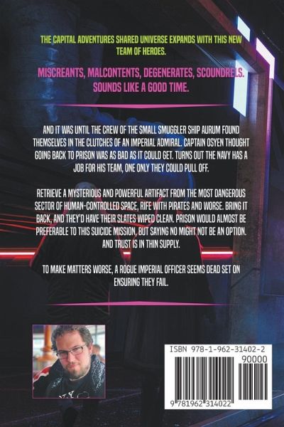 ¿¿¿¿¿ -- "If Firefly had a meaner older brother, this would be it." The Capital Adventures shared universe expands with this new team of heroes. See another side of the conflict, on the far side of Imperial space. **** Miscreants, malcontents, degenerates, scoundrels. Sounds like a good time. And it was until the crew of the small smuggler ship Aurum found themselves in the clutches of an Imperial Admiral. Captain Osyen thought going back to prison was as bad as it could get. Turns out the Navy has a job for his team, one only they could pull off. Retrieve a mysterious and powerful artifact from the most dangerous sector of human-controlled space, rife with pirates and worse. Bring it back, and they'd have their slates wiped clean. Prison would almost be preferable to this suicide mission, but saying no might not be an option. And trust is in thin supply. To make matters worse, a rogue Imperial officer seems dead set on ensuring they fail. ¿¿¿ The Capital-verse just got bigger with this new series, The Gold Service. Join this colorful ensemble-a handsome conman, a snarky gunslinger, a cautious cyborg, a reckless bruiser, an aging mechanic, a disgraced royal, and their young cabin boy-in an adventure that reviewers have praised as "...full of twists, turns and back-stabbing" and "...filled a Firefly-shaped hole in my heart..."