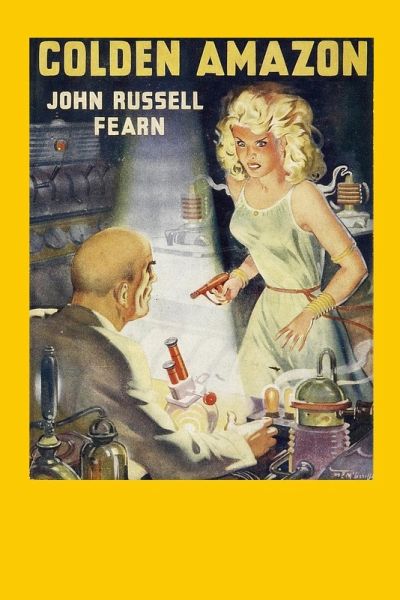 One of the most influential stars of science fiction, John Russell Fearn's Golden Amazon featured in numerous British and Canadian pulp magazines, who eventually got her own series of novels. Created as the first genuine superhuman, Violet Ray raised herself using her superior strength and intelligence to conquer the world, but eventually became mankind's interstellar savior as the "Golden Amazon". In this story, an invasion by alien lizard men leads to the Earth's sun slowly starting to burn out. Only the Golden Amazon along with an Atlantean prince from Jupiter can save the galaxy with their advanced technology.