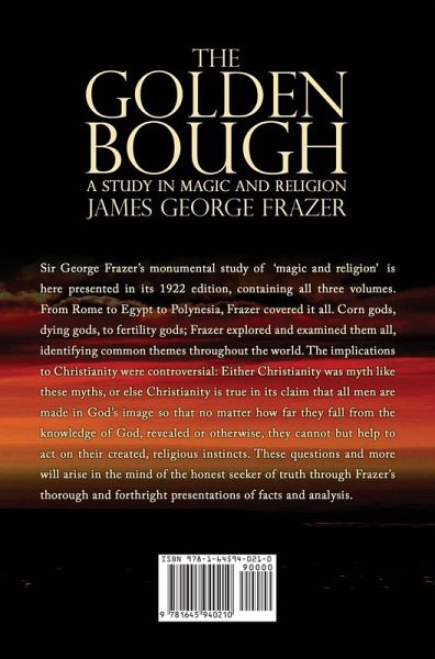 Sir James George Frazer's monumental study of 'magic and religion' is here presented in its 1922 edition, containing all three volumes. From Rome to Egypt to Polynesia, Frazer covered it all. Corn gods, dying gods, to fertility gods; Frazer explored and examined them all, identifying common themes throughout the world. The implications to Christianity were controversial: Either Christianity was myth like these myths, or else Christianity is true in its claim that all men are made in God's image so that no matter how far they fall from the knowledge of God, revealed or otherwise, they cannot but help to act on their created, religious instincts. These questions and more will arise in the mind of the honest seeker of truth through Frazer's thorough and forthright presentations of facts and analysis.