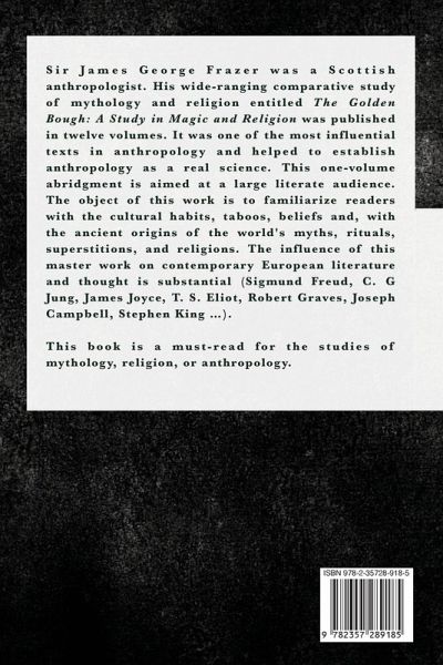 Sir James George Frazer was a Scottish anthropologist. His wide-ranging comparative study of mythology and religion entitled The Golden Bough: A Study in Magic and Religion was published in twelve volumes. It was one of the most influential texts in anthropology and helped to establish anthropology as a real science. This one-volume abridgment is aimed at a large literate audience. The object of this work is to familiarize readers with the cultural habits, taboos, beliefs and, with the ancient origins of the world's myths, rituals, superstitions, and religions. The influence of this master work on contemporary European literature and thought is substantial (Sigmund Freud, C. G Jung, James Joyce, T. S. Eliot, Robert Graves, Joseph Campbell, Stephen King ...).This book is a must-read for the studies of mythology, religion, or anthropology.