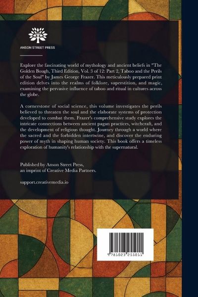 Explore the fascinating world of mythology and ancient beliefs in "The Golden Bough, Third Edition, Vol. 3 of 12: Part 2, Taboo and the Perils of the Soul" by James George Frazer. This meticulously prepared print edition delves into the realms of folklore, superstition, and magic, examining the pervasive influence of taboo and ritual in cultures across the globe. A cornerstone of social science, this volume investigates the perils believed to threaten the soul and the elaborate systems of protection developed to combat them. Frazer's comprehensive study explores the intricate connections between ancient pagan practices, witchcraft, and the development of religious thought. Journey through a world where the sacred and the forbidden intertwine, and discover the enduring power of myth in shaping human society. This book offers a timeless exploration of humanity's relationship with the supernatural. This work has been selected by scholars as being culturally important, and is part of the knowledge base of civilization as we know it. This work is in the public domain in the United States of America, and possibly other nations. Within the United States, you may freely copy and distribute this work, as no entity (individual or corporate) has a copyright on the body of the work. Scholars believe, and we concur, that this work is important enough to be preserved, reproduced, and made generally available to the public. We appreciate your support of the preservation process, and thank you for being an important part of keeping this knowledge alive and relevant.