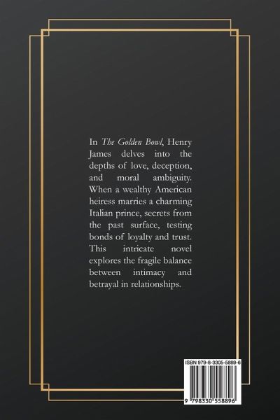In The Golden Bowl, Henry James delves into the depths of love, deception, and moral ambiguity. When a wealthy American heiress marries a charming Italian prince, secrets from the past surface, testing bonds of loyalty and trust. This intricate novel explores the fragile balance between intimacy and betrayal in relationships.