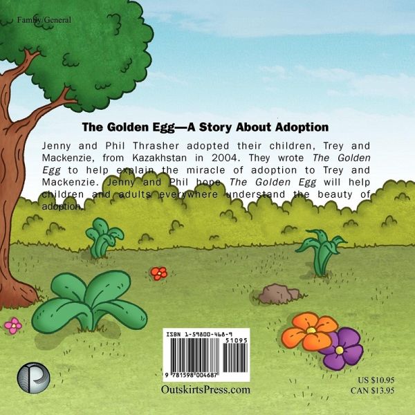 The Golden Egg - A Story About Adoption Jenny and Phil Thrasher adopted their children, Trey and Mackenzie, from Kazakhstan in 2004. They wrote The Golden Egg to help explain the miracle of adoption to Trey and Mackenzie. Jenny and Phil hope The Golden Egg will help children and adults everywhere understand the beauty of adoption.