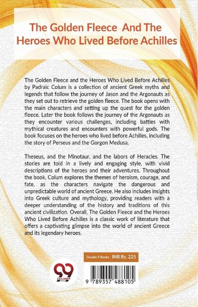 The Golden Fleece and the Heroes Who Lived Before Achilles by Padraic Colum is a collection of ancient Greek myths and legends that follow the journey of Jason and the Argonauts as they set out to retrieve the golden fleece. The book opens with the main characters and setting up the quest for the golden fleece. Later the book follows the journey of the Argonauts as they encounter various challenges, including battles with mythical creatures and encounters with powerful gods. The book focuses on the heroes who lived before Achilles, including the story of Perseus and the Gorgon Medusa, Theseus,…mehr