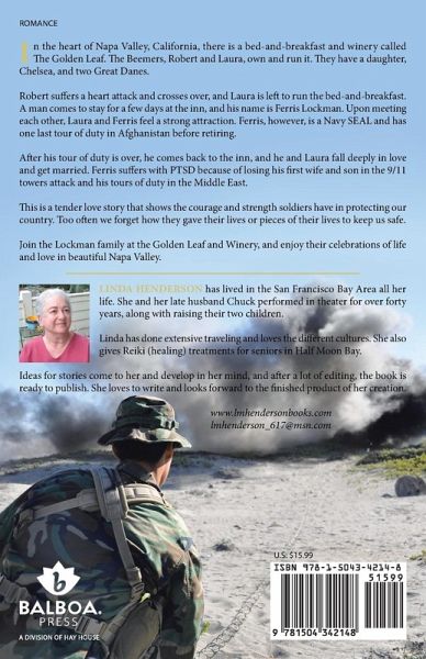 In the heart of Napa Valley, California, there is a bed-and-breakfast and winery called The Golden Leaf. The Beemers, Robert and Laura, own and run it. They have a daughter, Chelsea, and two Great Danes. Robert suffers a heart attack and crosses over, and Laura is left to run the bed-and-breakfast. A man comes to stay for a few days at the inn, and his name is Ferris Lockman. Upon meeting each other, Laura and Ferris feel a strong attraction. Ferris, however, is a Navy SEAL and has one last tour of duty in Afghanistan before retiring. After his tour of duty is over, he comes back to the inn, and he and Laura fall deeply in love and get married. Ferris suffers with PTSD because of losing his first wife and son in the 9/11 towers attack and his tours of duty in the Middle East. This is a tender love story that shows the courage and strength soldiers have in protecting our country. Too often we forget how they gave their lives or pieces of their lives to keep us safe. Join the Lockman family at the Golden Leaf and Winery, and enjoy their celebrations of life and love in beautiful Napa Valley.