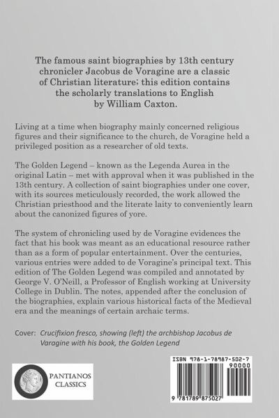 The famous saint biographies by 13th century chronicler Jacobus de Voragine are a classic of Christian literature; this edition contains the scholarly translations to English by William Caxton. Living at a time when biography mainly concerned religious figures and their significance to the church, de Voragine held a privileged position as a researcher of old texts. The Golden Legend - known as the Legenda Aurea in the original Latin - met with approval when it was published in the 13th century. A collection of saint biographies under one cover, with its sources meticulously recorded, the work allowed the Christian priesthood and the literate laity to conveniently learn about the canonized figures of yore. The system of chronicling used by de Voragine evidences the fact that his book was meant as an educational resource rather than as a form of popular entertainment. Over the centuries, various entries were added to de Voragine's principal text. This edition of The Golden Legend was compiled and annotated by George V. O'Neill, a Professor of English working at University College in Dublin. The notes, appended after the conclusion of the biographies, explain various historical facts of the Medieval era and the meanings of certain archaic terms.