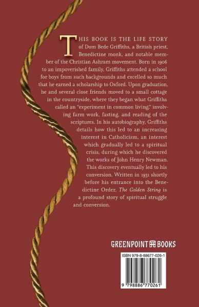 This book is the life story of Dom Bede Griffiths, a British priest, Benedictine monk, and notable member of the Christian Ashram movement. Born in 1906 to an impoverished family, Griffiths attended a school for boys from such backgrounds and excelled so much that he earned a scholarship to Oxford. Upon graduation, he and several close friends moved to a small cottage in the countryside, where they began what Griffiths called an "experiment in common living," involving farm work, fasting, and reading of the scriptures. In his autobiography, Griffiths details how this led to an increasing interest in Catholicism, an interest which gradually led to a spiritual crisis, during which he discovered the works of John Henry Newman. This discovery eventually led to his conversion. Written in 1931 shortly before his entrance into the Benedictine Order, The Golden String is a profound story of spiritual struggle and conversion.